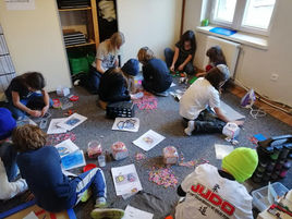 Czas wolny dzieci spędzają z kim chcą, mieszają się między grupami wiekowymi, zainteresowaniami, mają przestrzeń do tego aby ten czas spędzać zgodnie ze swoimi potrzebami i wyobraźnią. Mogą korzystać z zajęć dodatkowych (m.in Krav Maga, ceramika, plastyka, scretch), bawić się z kolegami i koleżankami, tańczyć, śpiewać, grać w piłkę, budować bazy, wyżywać się artystycznie, budować z najróżniejszych klocków, czytać, odpoczywać i wiele, wiele innych. Staramy się zapewniać im kreatywną i stymulującą przestrzeń.